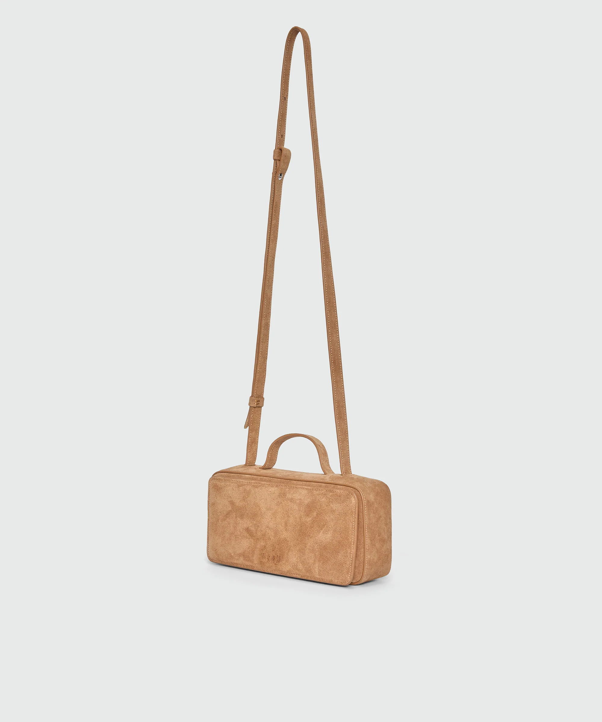 Hard suede bag with a rigid handle and adjustable shoulder strap. Compact rectangular design with rounded corners. Lined interior with printed MSGM detail. Magnetic closure. ONE size.
