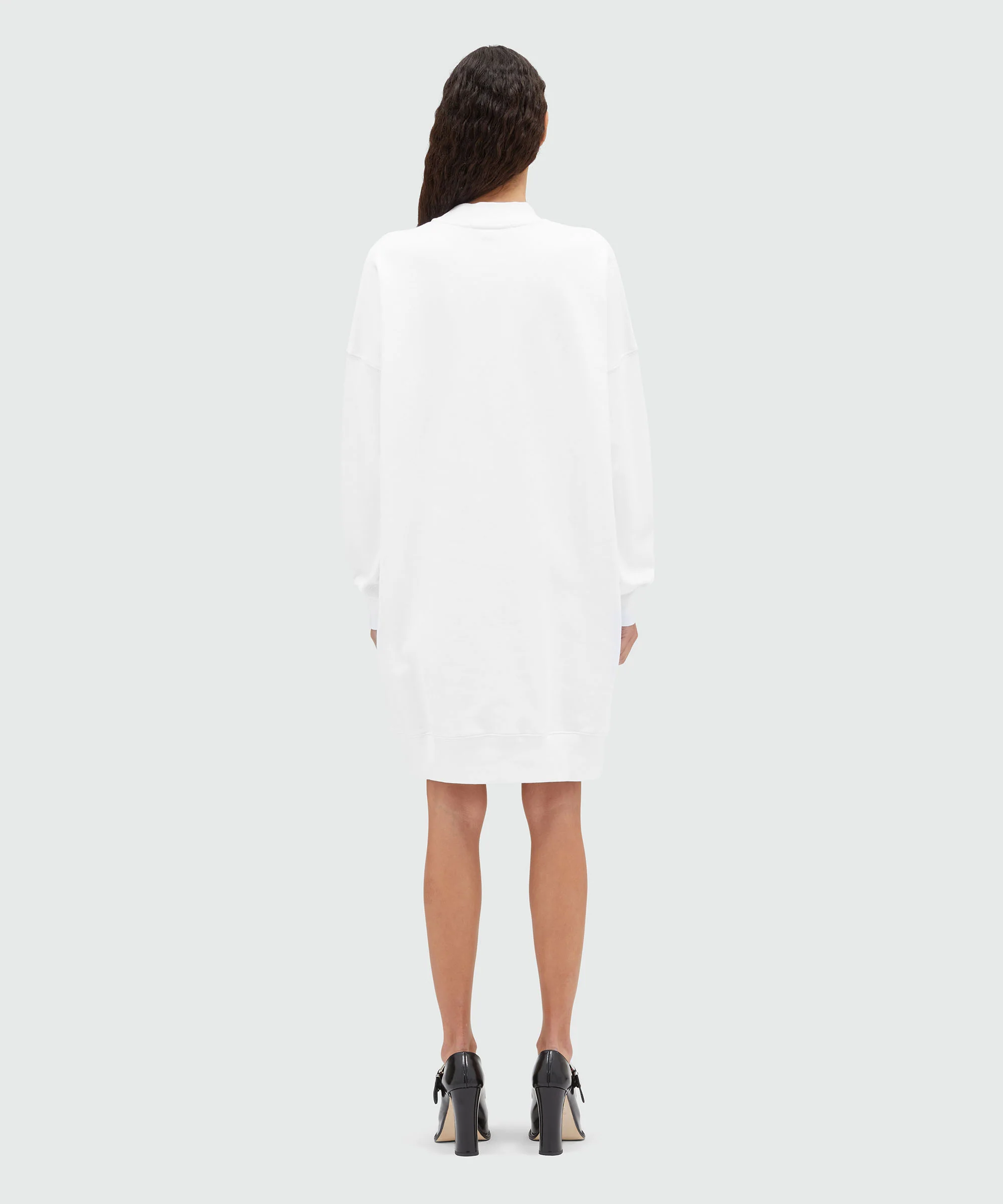 Ribbed round neck dress in solid colour cotton. The dress features an ungauzed interior and long sleeves ending in ribbed cuffs. The brushed MSGM Milano logo is on the front. The fit is regular.