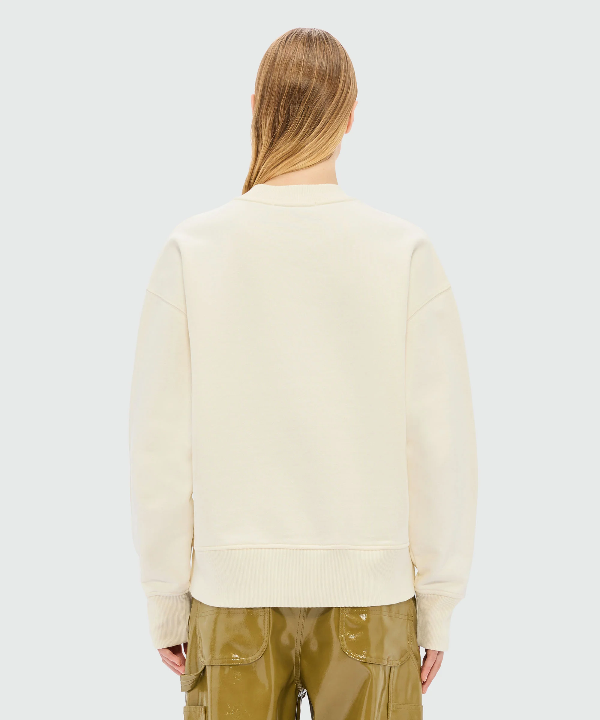 Crewneck cotton jersey sweatshirt with "Cute Kitty" print and embroidered MSGM logo. Ribbed collar, cuffs, and hem. Dropped shoulders and long sleeves. Oversized fit. Model wears size S/40.